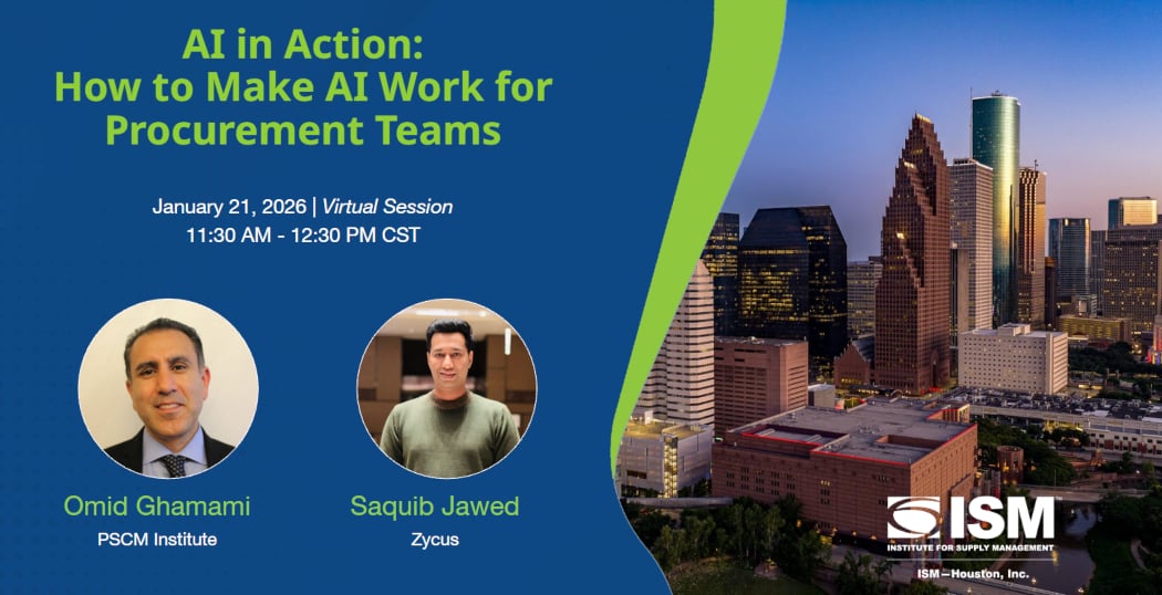 Building on ISM-Houston’s November session, “AI Beyond the Hype: Practical Prompt Engineering for Supply Chain,” this webinar takes the next step - moving from prompting to performance. Join experts from Zycus, pioneers in autonomous procurement, as we explore how procurement teams can apply AI in everyday workflows to drive measurable business outcomes.
